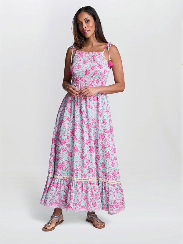 Make a vibrant impression with multi-coloured floral dresses by Gina Bacconi. Perfect for bold statements and joyful occasions, these dresses exude playfulness and elegance.