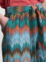 Lightweight green and rust multi-colour print trousers with an elasticised waist and wide leg. These trousers are comfortable to wear but look chic and pulled together. Team with our Bethan rust coloured T-shirt for a complete look.