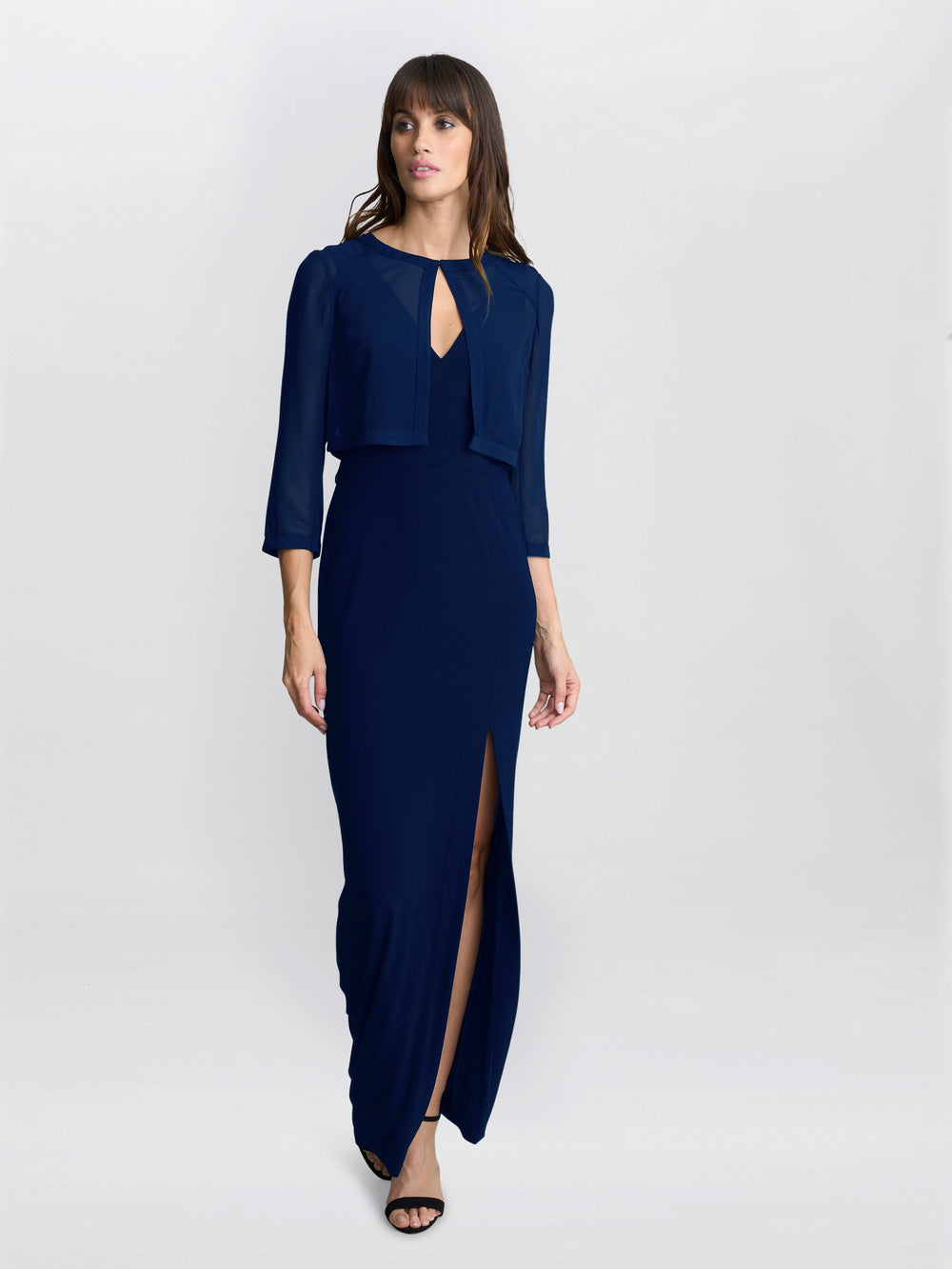A beautiful and simple blue bolero, cut in chiffon and a taped edge. This is a classic piece that you will wear again and again.