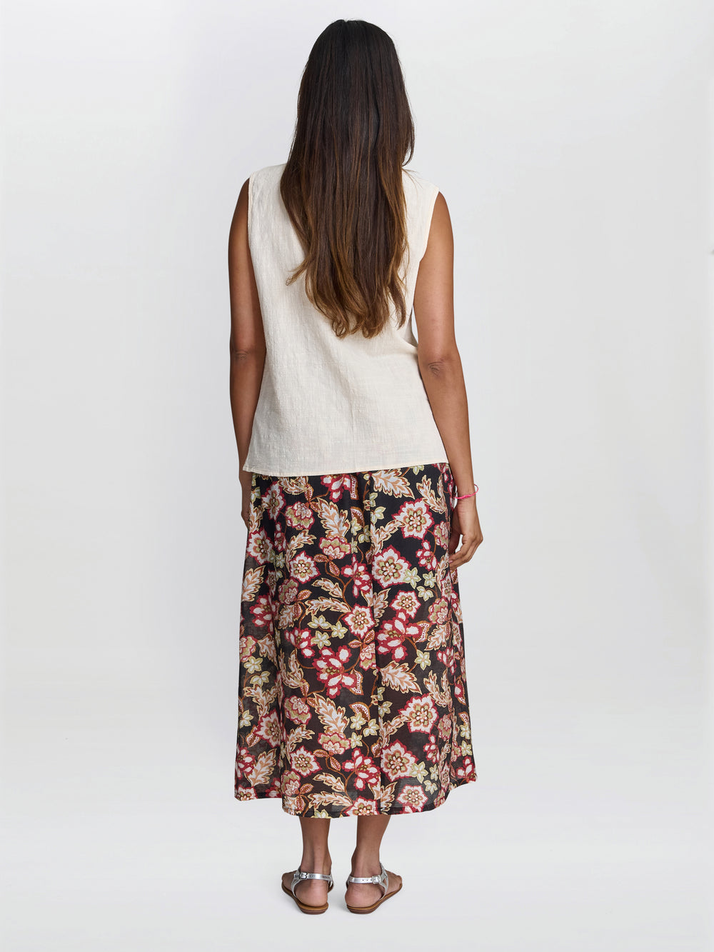 This intricately embroidered, beige and red sleevless cotton shirt is gorgeous for the warmer days. Team with our black and red skirt for a effortlessly put together look, or throw on with jeans or shorts for a more casual daytime outfit.