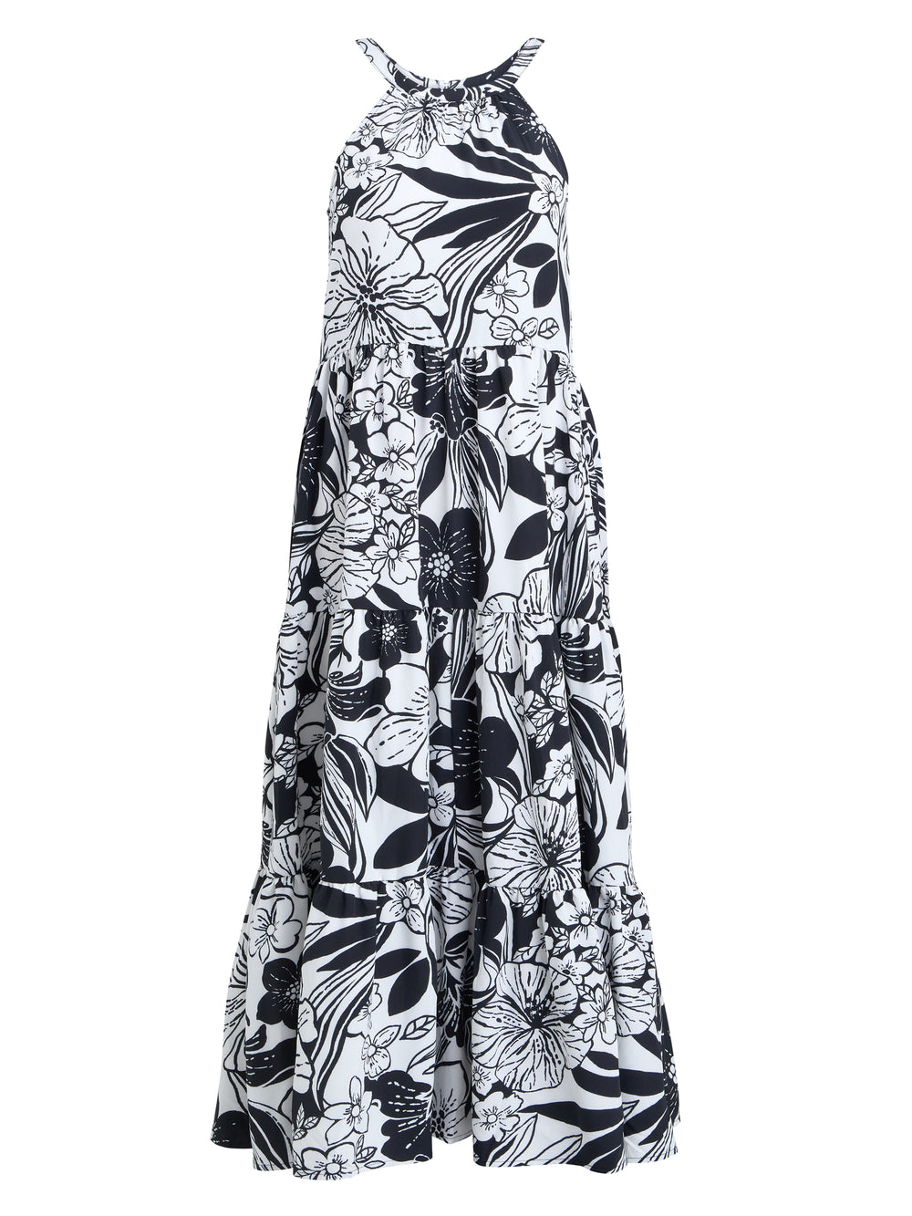 Make a statement in the striking Dina halter crepe maxi dress. Featuring a monochrome floral print, this flowing maxi dress is designed with a flattering halter necklineand soft pleating that adds graceful movement. Prefect for summer events, garden parties or any occasion.