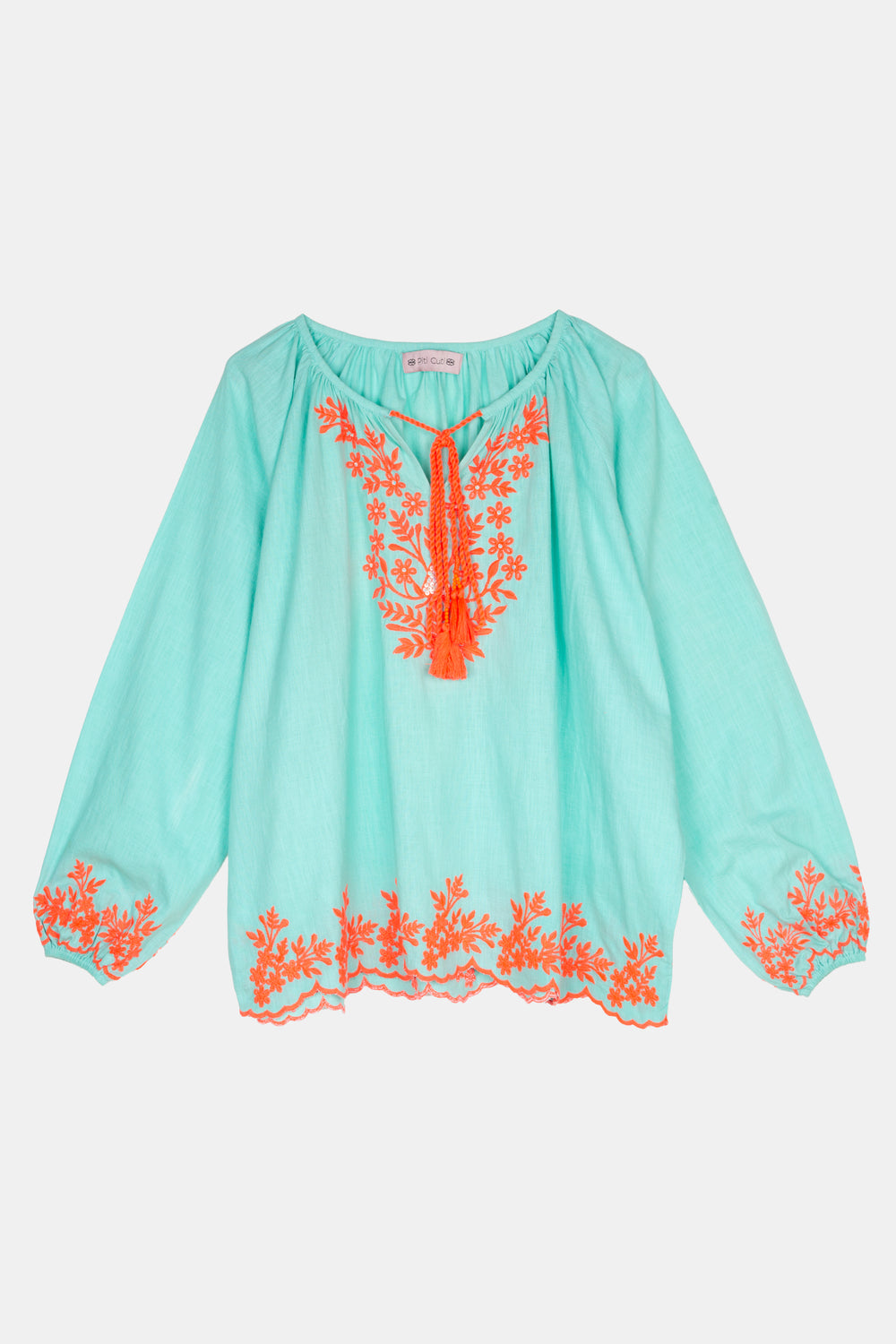 Matching long-sleeved cotton embroidered blouse set with embroidered shorts perfect to wear together or separately.