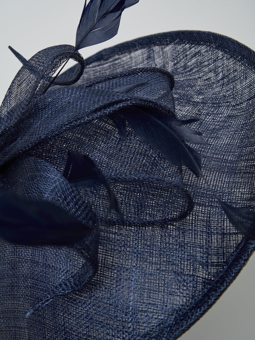 This beautiful new hatinator is designed to flatter from every angle. Featuring a large rolled-edge bow with graceful sinamay loops that sweep around the base, it’s finished with striking double-trimmed coque feathers for the perfect touch of elegance. A versatile choice for all ages and occasions, this standout piece is sure to turn heads.