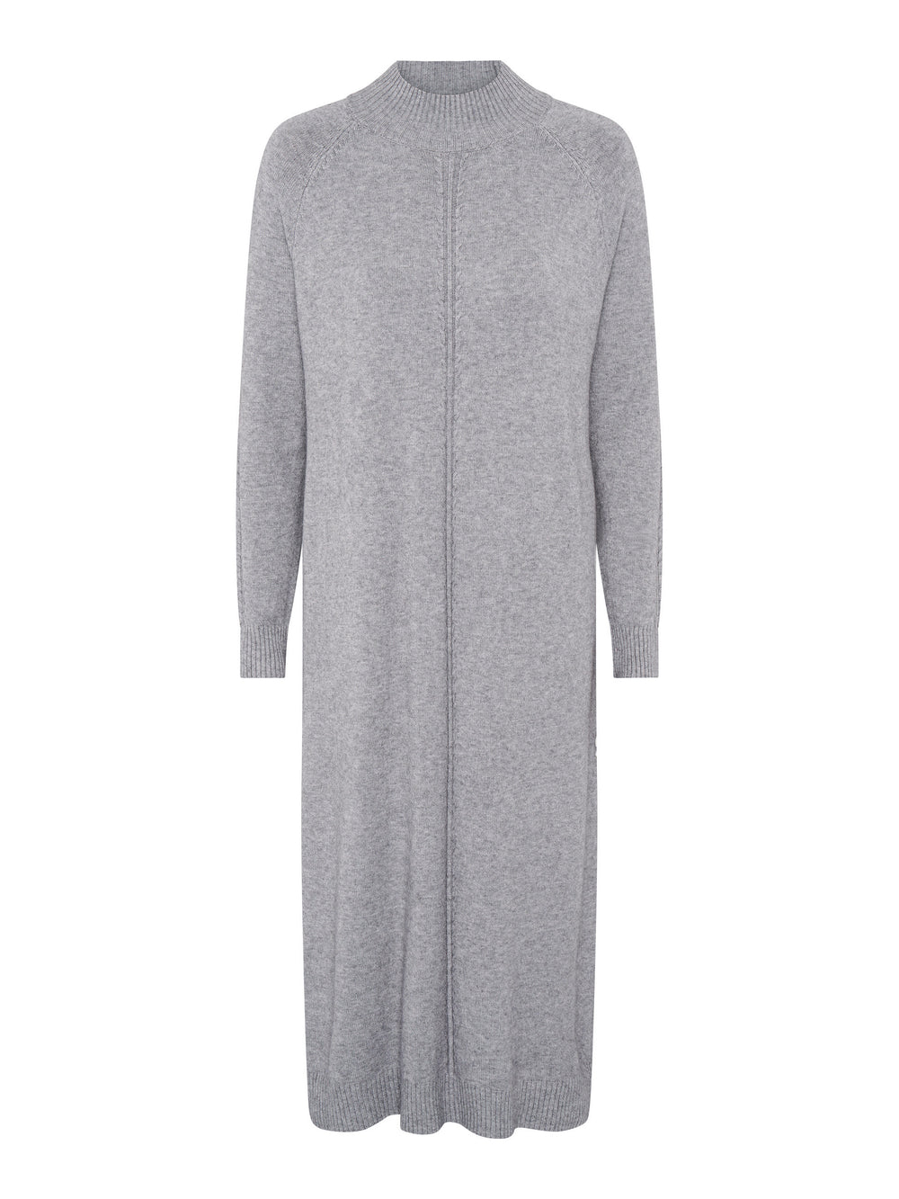 Chic and comfortable, the Natalya dress in grey is your new cold weather essential. Made from a soft knit, this dress features a relaxed silhouette with long sleeves and ribbed cuffs. The high neckline adds a touch of elegance, while the midi length offers versatile styling.