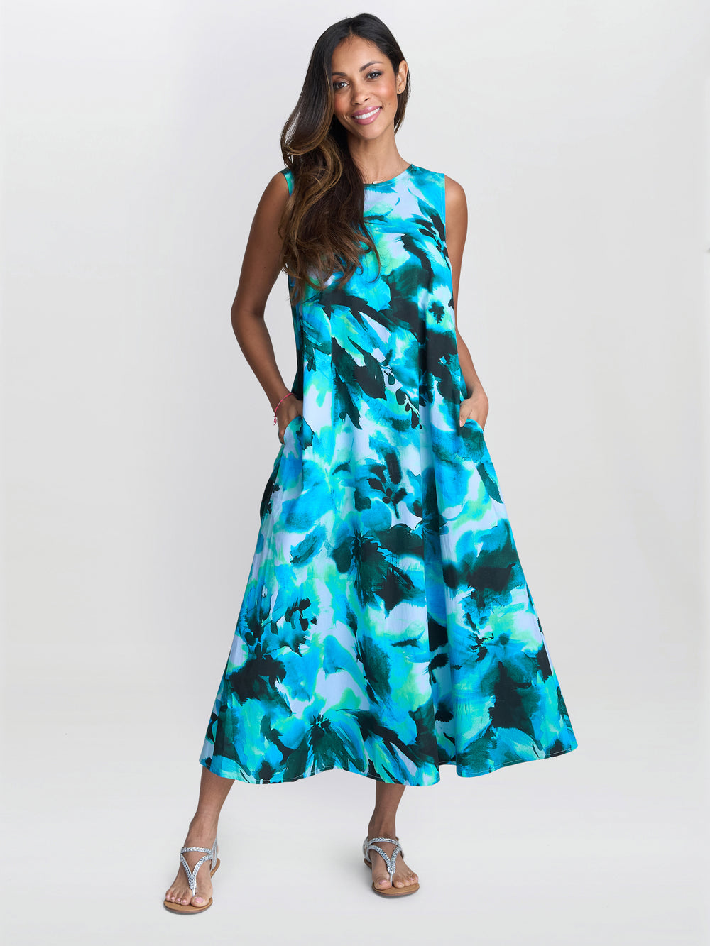 Step into summer with the Rory tent dress by Gina Bacconi, a playful yet elegant addition to your daywear collection. Designed in a breezy sleeveless silhouette, this dress features a bold colourful design in shades of green, blue and navy. The relaxed shape offers comfort with a stylish flow. This dress is mid-length and unlinned.