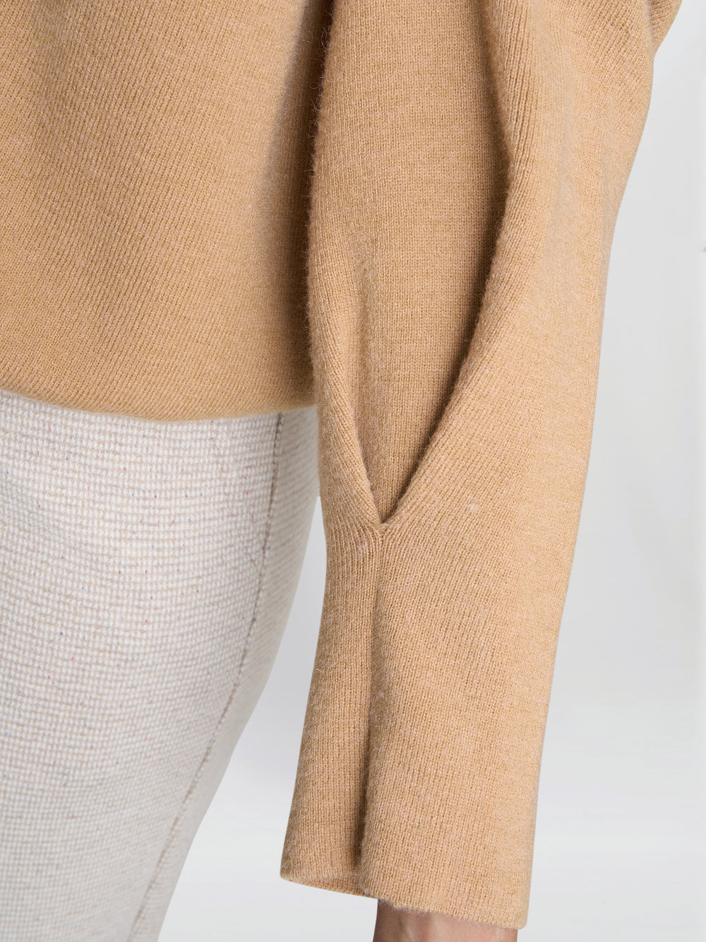 Elevate your everyday wardrobe with the effortlessly chic Zarina knit jumper. Made from a soft, cozy knit, this jumper features a relaxed fit. The warm beige tone makes it a versatile staple, perfect for layering through seasons.